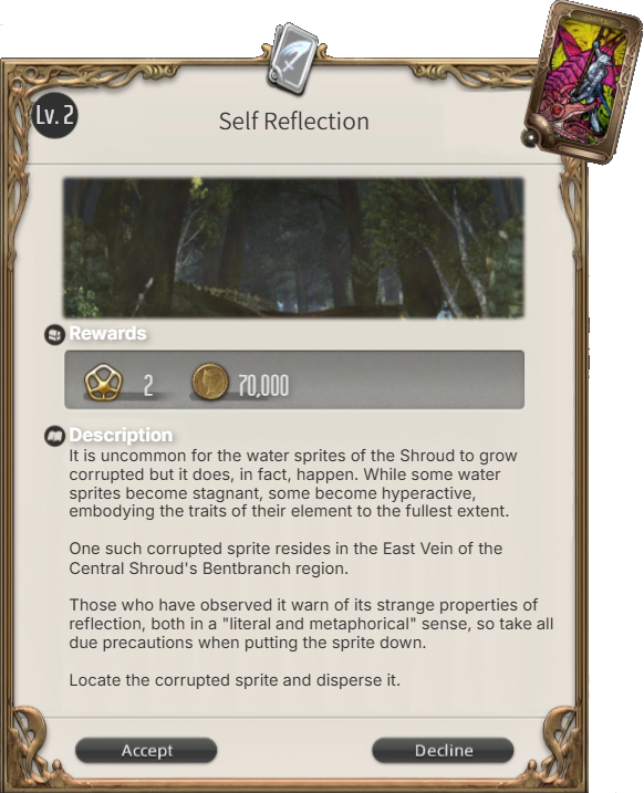 Anyone can choose to DM one of these levequests. I can provide potential challenges/complications and will highlight what secrets are essential to make sure the quiet overworld plot of the levequests make sense.