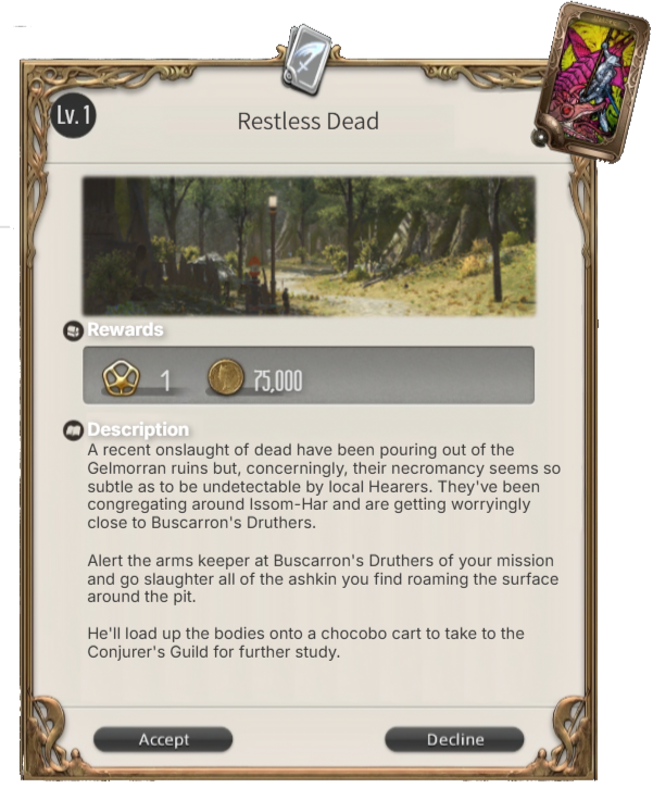 Rewards: +1 XP, 75,000 Gil