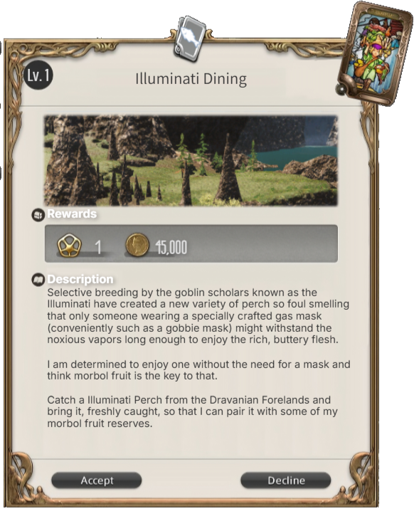 Rewards: +2 XP, +1 XP for being tricked by imps, 75,000 Gil